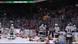 “Let the sweet cuddly mayhem commence!” exclaimed play-by-play broadcaster Zack Fisch, as the toys filled the ice. This heartwarming tradition continues to bring the community together while supporting those in need through charitable donations.